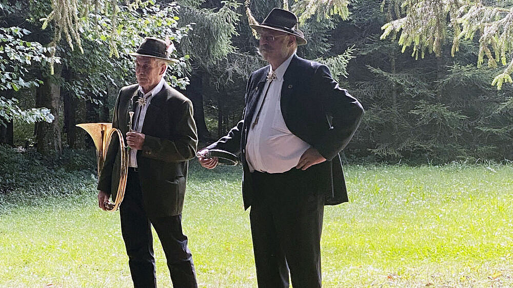 Die Jagdhornbläserinnen und Jagdhornbläser in Aktion, Jagdsignal «Begrüssung» – Video: Elise Hufschmid