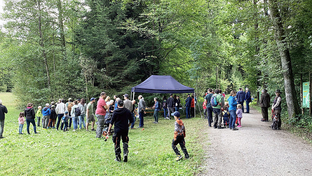 Am Freitag waren bereits einige Posten für Schulklassen geöffnet, wobei die grosse, die Waldtage besuchende Kinderschar von Jagdhornbläserinnen und Jagdhornbläsern mit Naturhornklängen begrüsst wurden. Gegen 800 Schülerinnen und Schüler haben die Gelegenheit genutzt und sich selbst ein Bild von diversen waldspezifischen Themen gemacht.