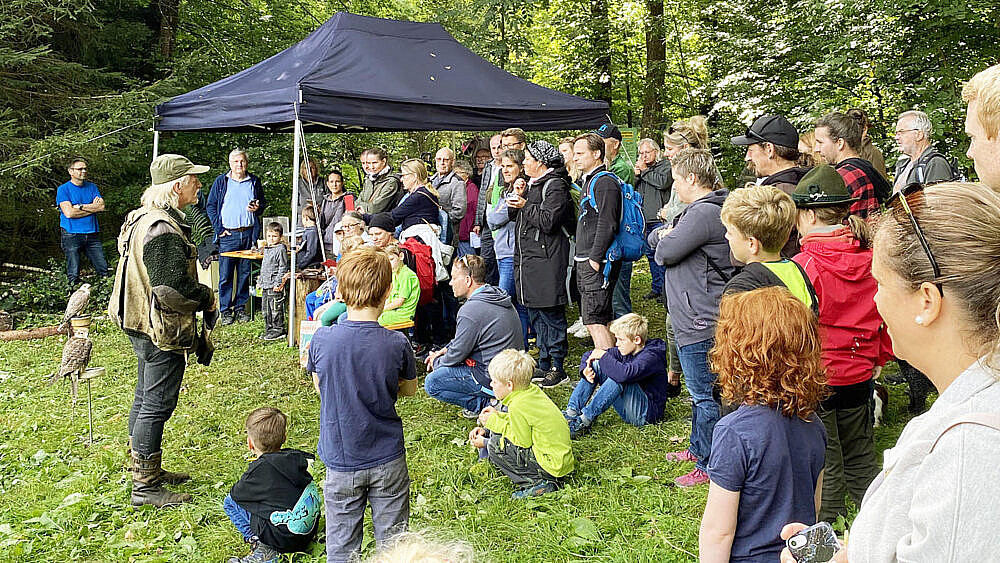 Ein Falkner, der an einem Jagdposten mit zwei Sakerfalken (Falco cherrug), auch Würgfalken genannt, vor Ort war, kam bei Jung und Alt gleichermassen gut an. Er gab sein breites Wissen bereitwillig weiter und führte mit seinen Falken Demoflüge durch. Für die Zuschauerinnen und Zuschauer war es immer wieder beeindruckend, die Flugkünste dieser flinken Vögel zu sehen.
